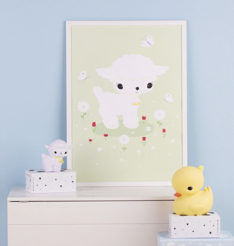 Une jolie affiche décorée d'un agneauDécorez joliment les murs de la chambre de bébé grâce à cette affiche agneau A Little Lovely Company.