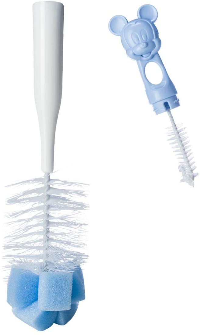 Goupillon Disney Mickey pour biberon avec partie en mousse et une partie brosse.Son plus : un petit goupillon rangé dans le manche idéal pour le nettoyage de la tétine.