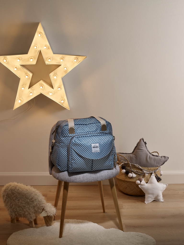 Accessoires : Livré avec pochette repas isotherme, trousse de rangement et protection pour sucettes, matelas à langer amovible.