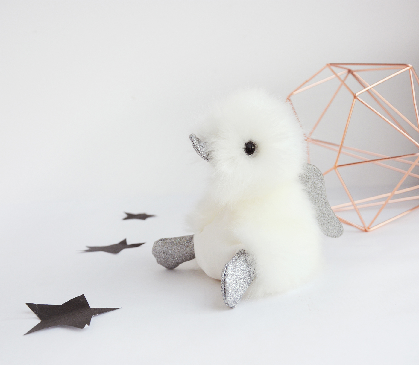 Ce joli porte clés à mousqueton a une fourrure dense ultra douce et un regard plein de paillettes, elle fera craquer petits et grands.