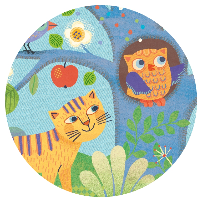 L'enfant découvre l'univers de maman hibou et son bébé sur l'arbre.