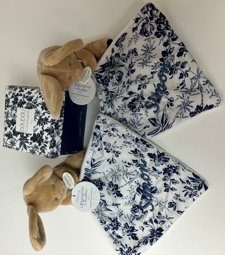 Si vous avez déjà commandé ce doudou et que vous souhaitez la même broderie, nous vous remercions de prendre contact avec nous soit avant ou juste après la passation de commande, en nous envoyant par mail, une photo du doudou que vous avez. Vous pouvez également nous contacter par téléphone au 02.99.89.06.25 du lundi au vendredi de 9h-12h – 14h-17h.