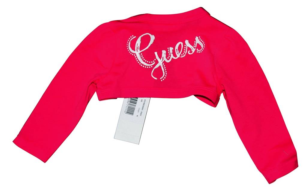 Mon bolero Guess.Cardigan en coton rose à manches longues.