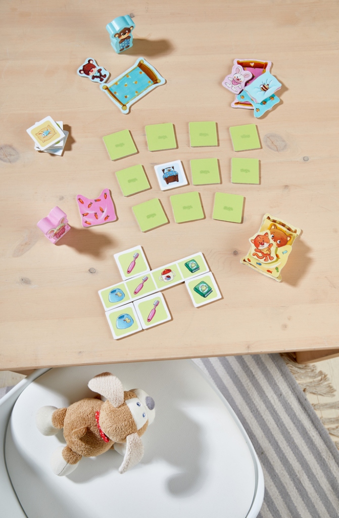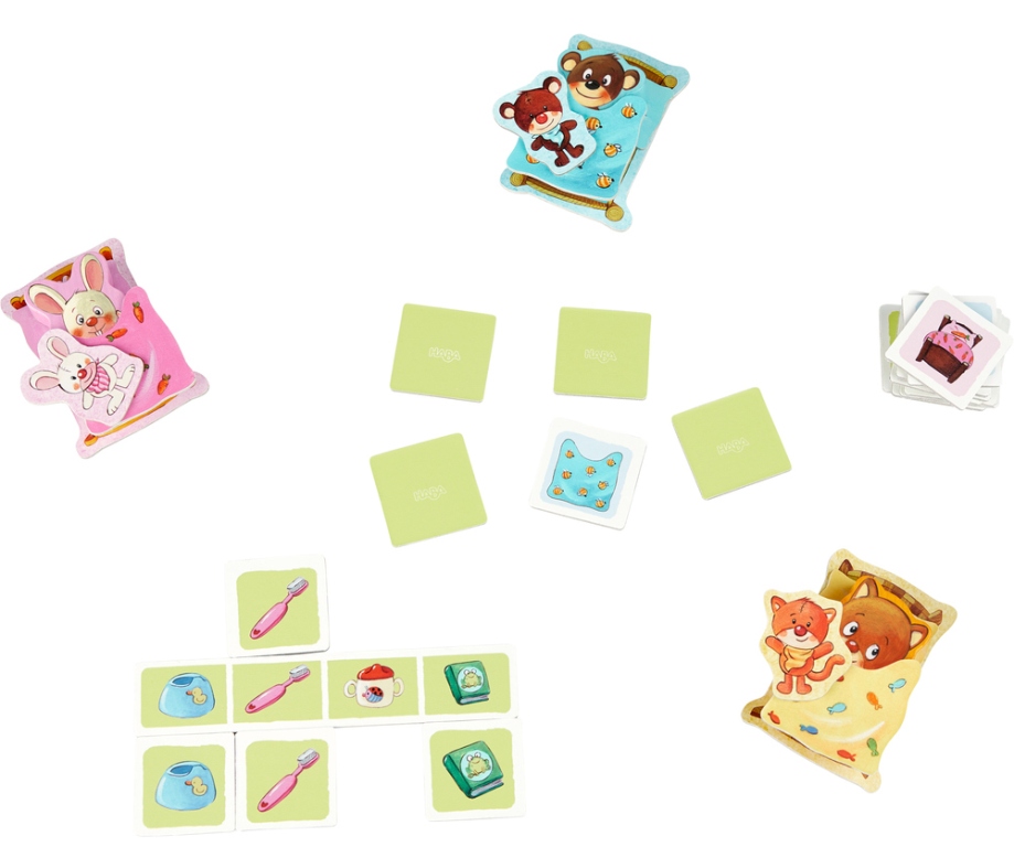 Si les enfants ont une bonne mémoire et aussi un peu de chance en retournant les plaquettes, ils réussiront à mettre les animaux au lit rapidement.