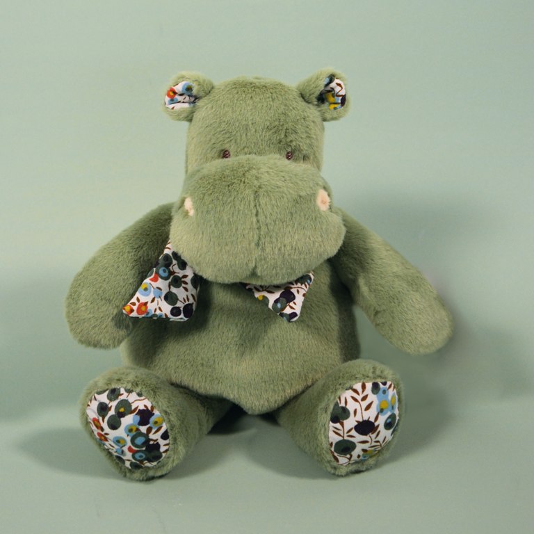 - Peluche Hippopotame Vert Amande Bandana - 22 cm