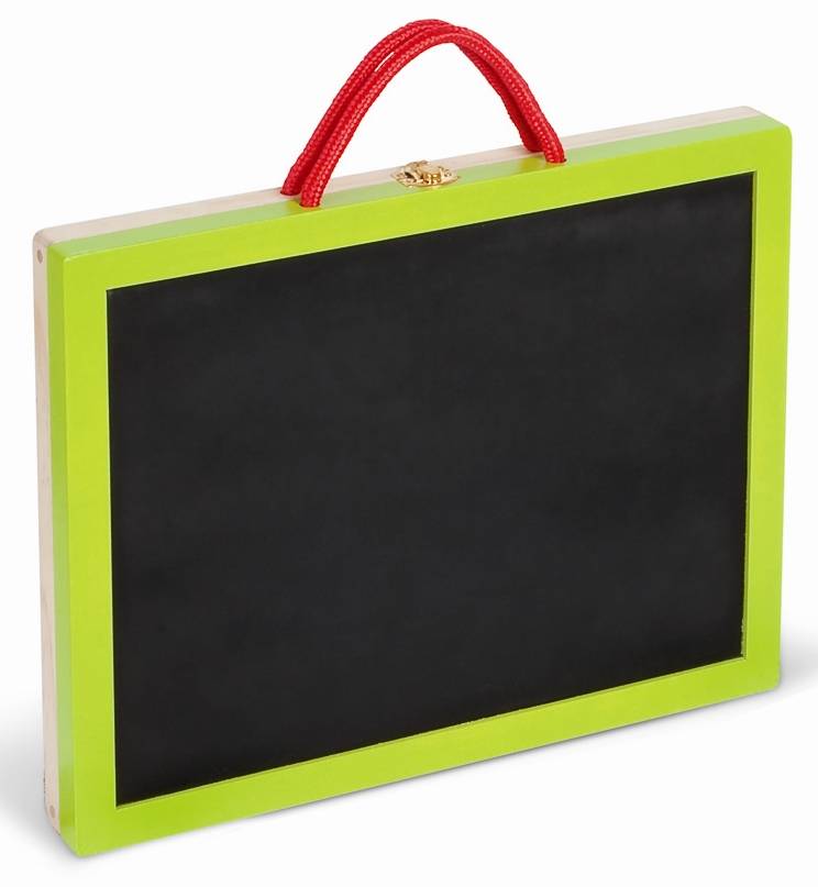 Matériau(x) utilisé(s) : mallette en pin, ardoise noire en bois, bouton en merisier, corde en nylon.