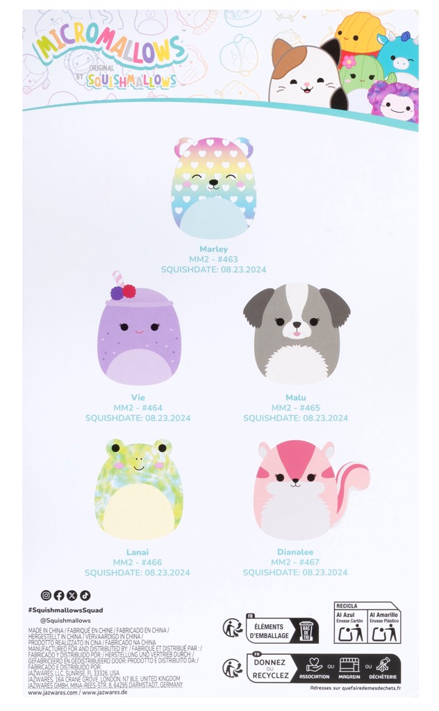 Découvrez le Coffret de 5 Peluches Micromallows by Squishmallows, une adorable collection de mini peluches ultra douces, colorées et pleines de personnalité.