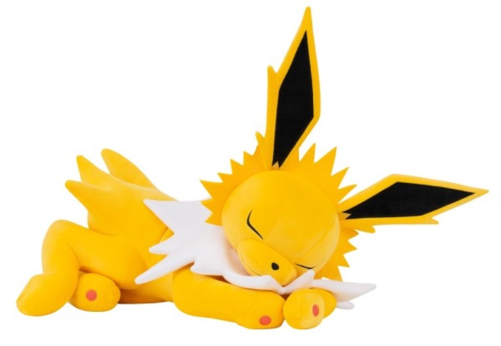 Découvrez la peluche Voltali couchée Pokémon Jazwares (40 cm), une version pleine de tendresse du Pokémon Électrik le plus rapide et courageux d’Evoli !