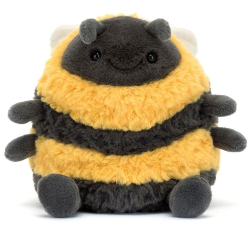 Design craquant et original : une petite abeille tout en rondeur avec son pelage rayé jaune et noir, typique de la qualité Jellycat.