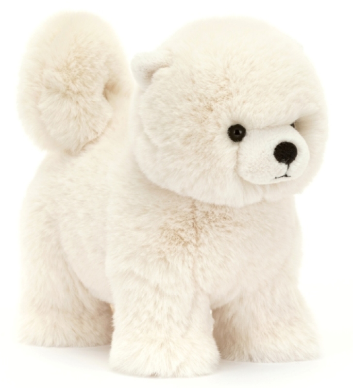 Dans la famille Jellycat, voici mon joli chien PoméranieCette adorable peluche chien, de couleur blanc, est toute douce et parfaite pour faire de gros câlins.