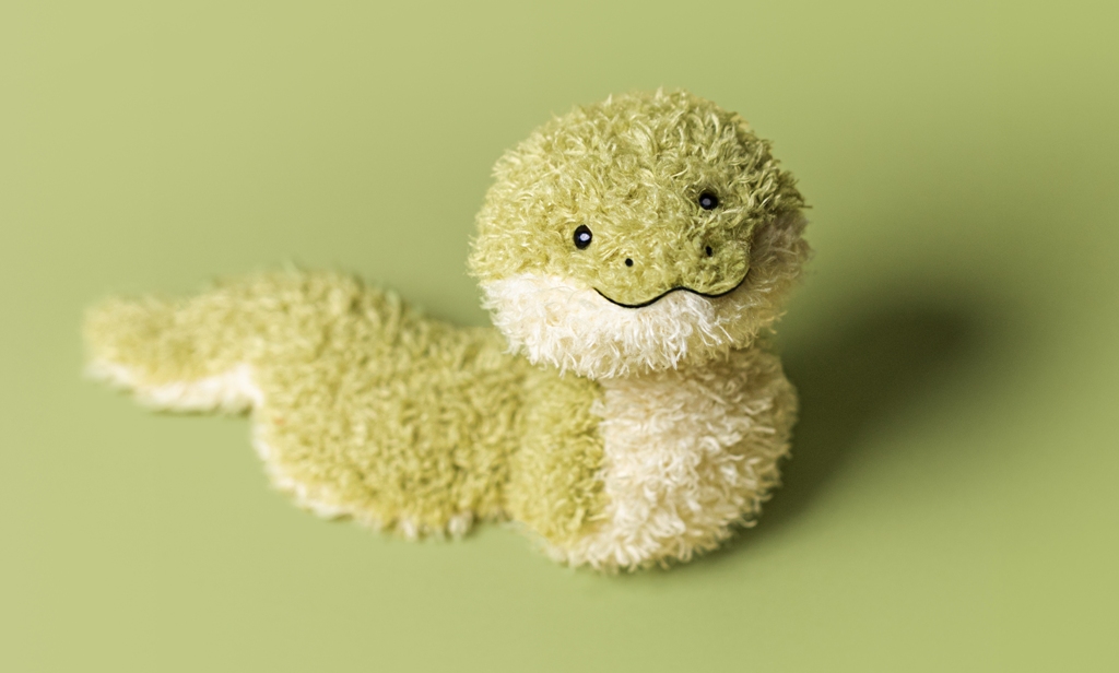 Dans la famille Jellycat, voici mon joli petit serpentCette adorable peluche serpent, de couleur vert et blanc est toute douce et parfaite pour faire de gros câlins.