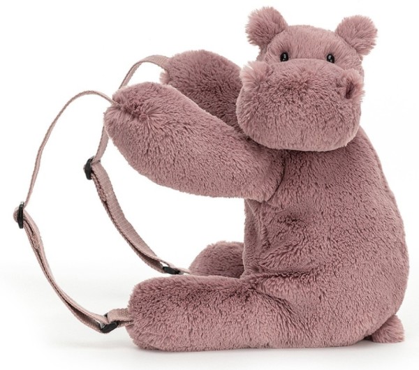 Dans la famille Huggadies, voici mon sac à dos hippopotame !Un sac à dos en peluche, idéal pour emmener doudou partout avec soi !