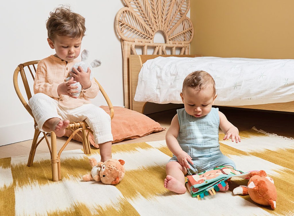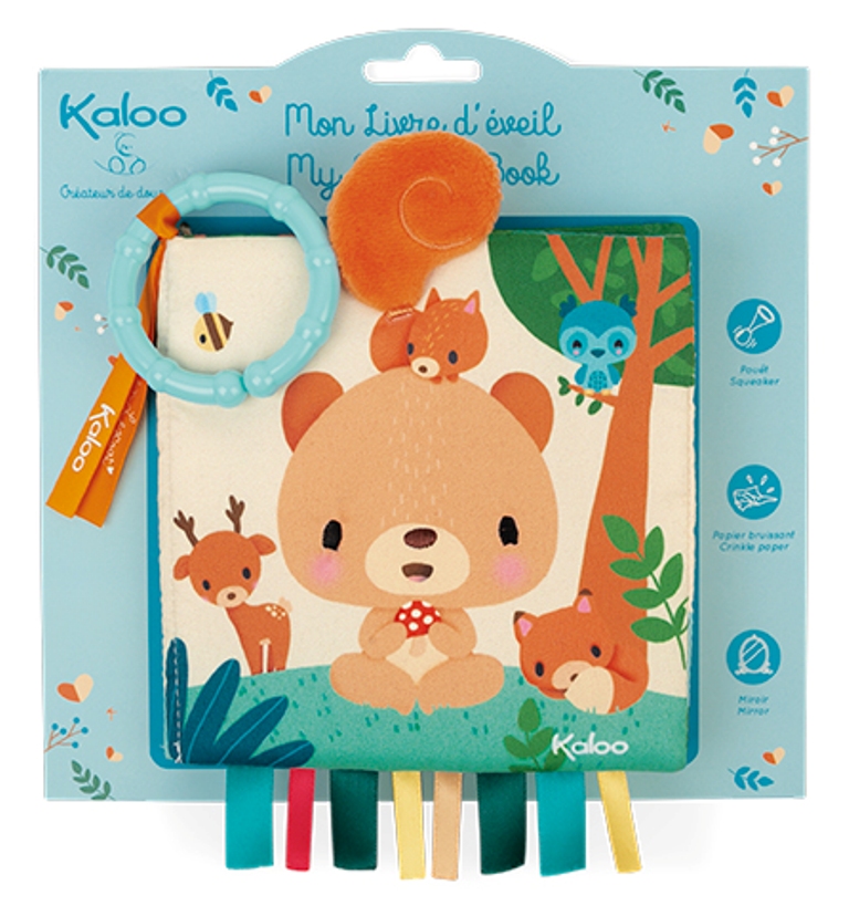Le livre d'éveil Kaloo est livré dans un emballage plastique.