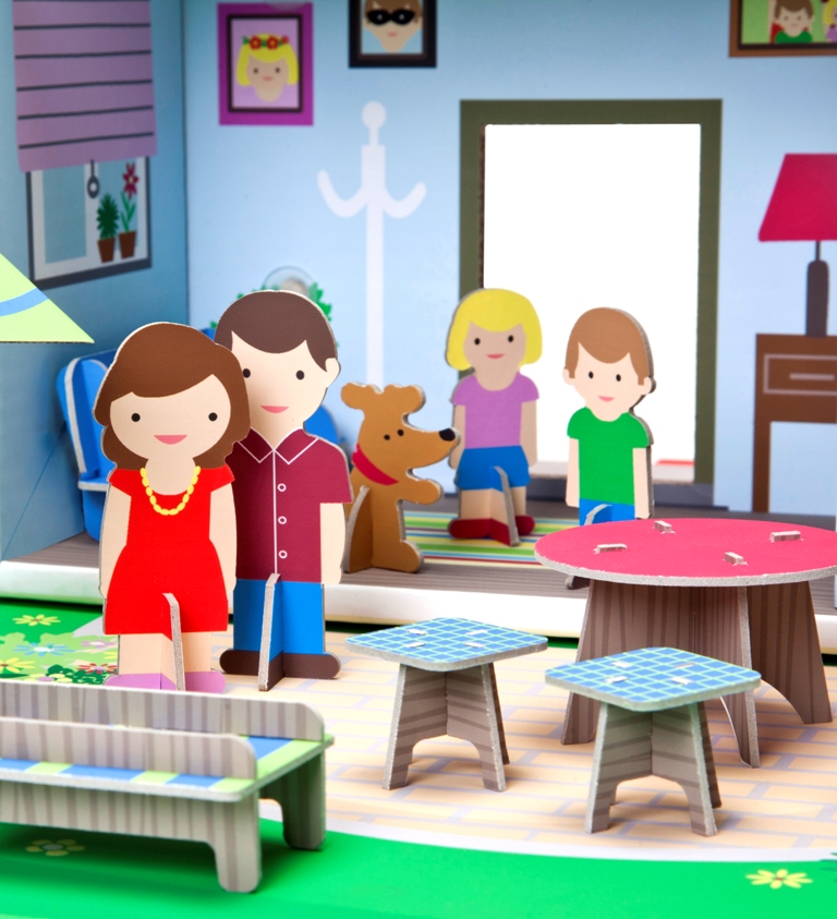 Accompagné d'un adulte, votre enfant construit les meubles, les personnages et la niche à l'aide des cartonettes pré-découpées.