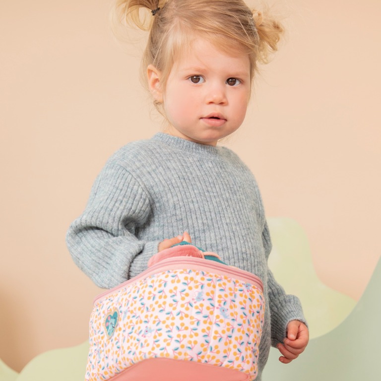 Son tissu robuste est conçu pour résister aux petits accidents du quotidien, tandis que son design coloré apporte une touche de douceur à chaque déplacement.