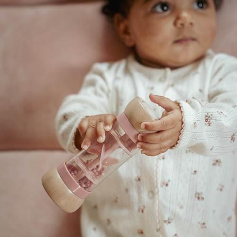 Offrez à votre enfant un premier jouet d’éveil sensoriel avec le hochet de pluie Rose de la collection Fairy Garden de Little Dutch.