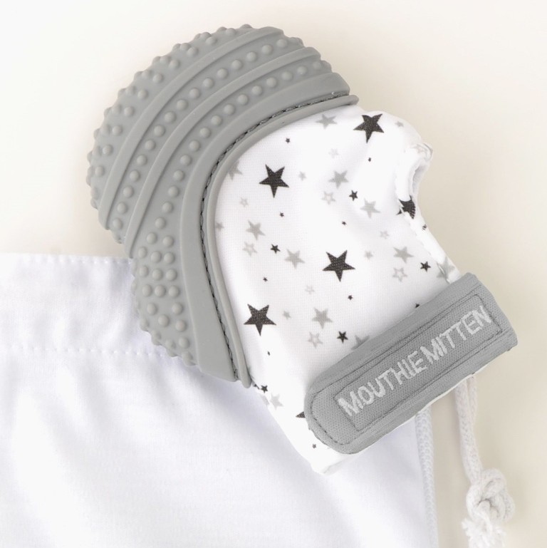 La mitaine soulage les gencives de bébé grâce à sa surface de dentition souple et flexible en silicone de qualité alimentaire, sans BPA et sans phtalate.