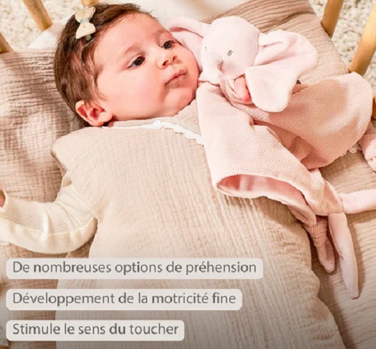 Conçu dans des matières ultra-douces, ce doudou deviendra vite l’allié préféré de bébé pour s’endormir paisiblement ou se réconforter au quotidien.