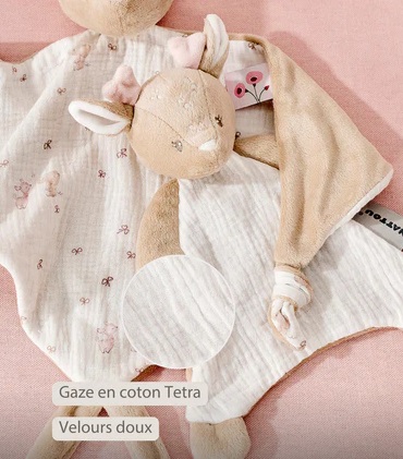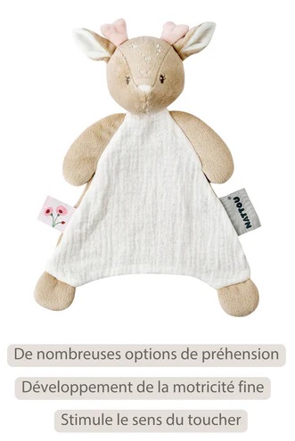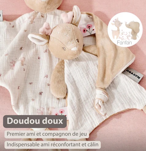 Son design attendrissant à l’effigie du faon Fanfan en fait un compagnon tendre et rassurant, idéal dès la naissance.