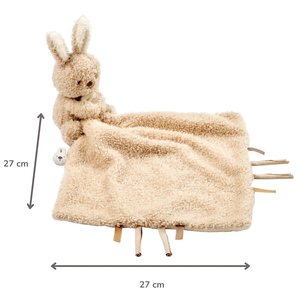 Inspiré de la collection Teddy, ce doudou associe un adorable petit lapin aux longues oreilles et un mouchoir tout doux, facile à attraper par les petites mains.