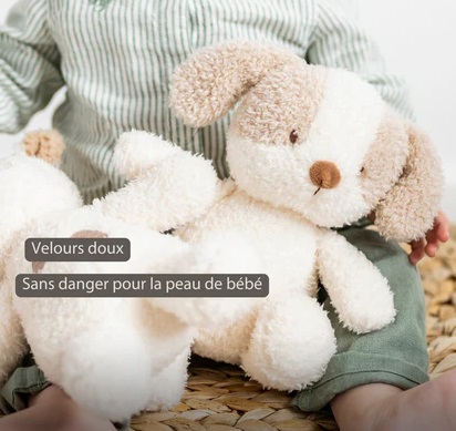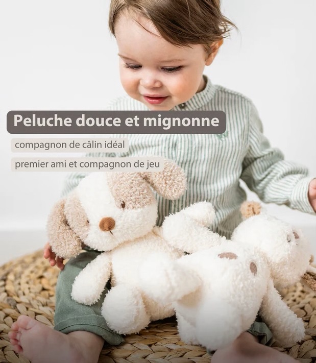 Avec son petit museau attendrissant, ses grandes oreilles souples et son pelage ultra moelleux, ce chien en peluche deviendra vite le meilleur ami de bébé.