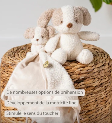 La peluche chien Teddy Nattou est un adorable compagnon de tendresse issu de la collection Teddy, imaginée pour entourer bébé de douceur et de réconfort.