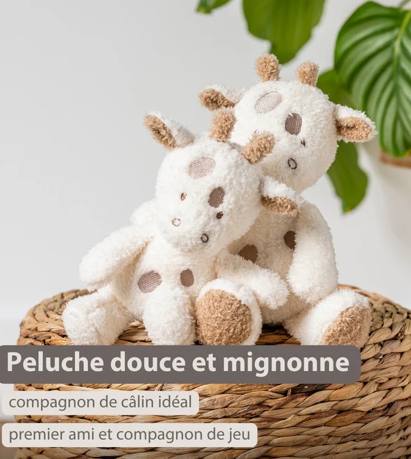 Design tendre et rassurant : Une girafe au visage doux, aux couleurs pastel et aux formes arrondies, idéale pour les nouveau-nés.