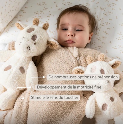Spécialement conçue pour les tout-petits, cette girafe câline devient rapidement un compagnon fidèle dès la naissance.