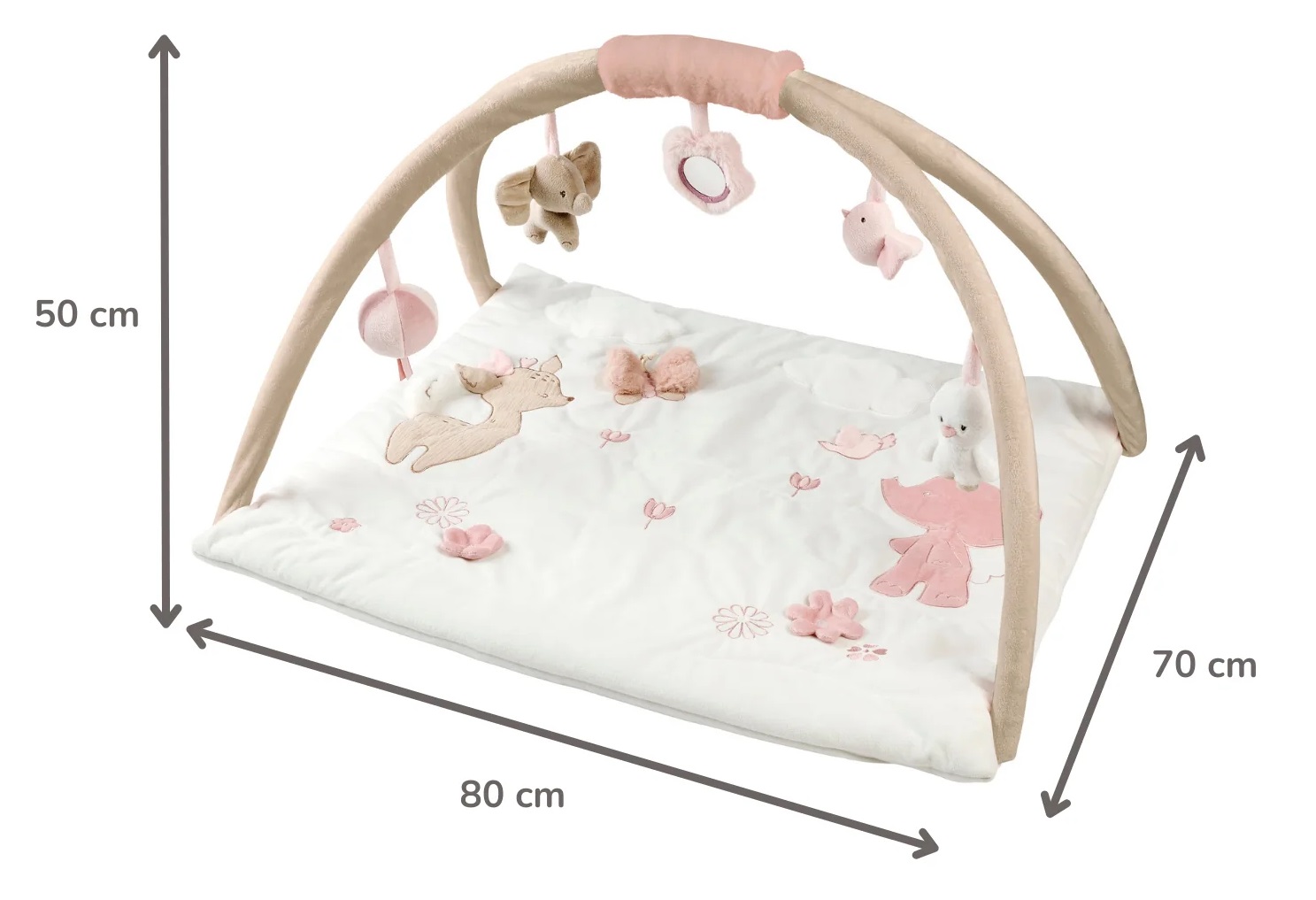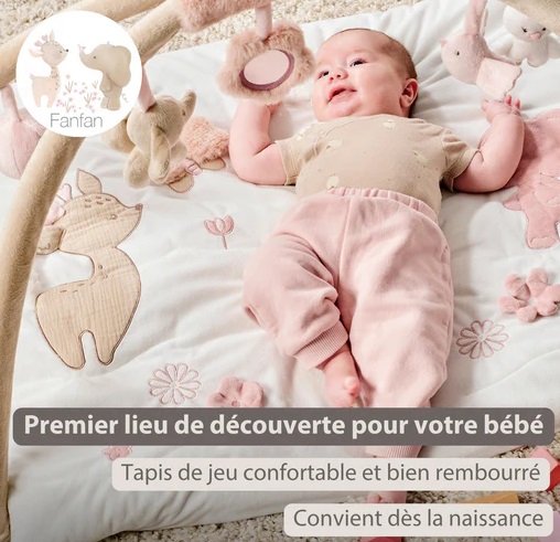 Ce tapis aux couleurs tendres met en scène Fanfan le faon et ses amis, pour stimuler la curiosité et l’éveil des sens de bébé tout en douceur.