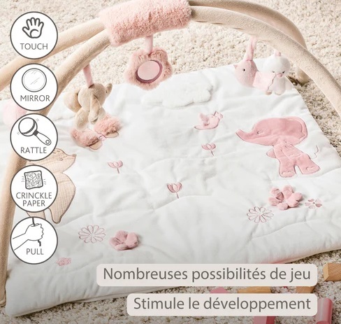 Doux, moelleux et sécurisé, il offre un espace de jeu confortable où bébé peut s’allonger, attraper, toucher et observer.