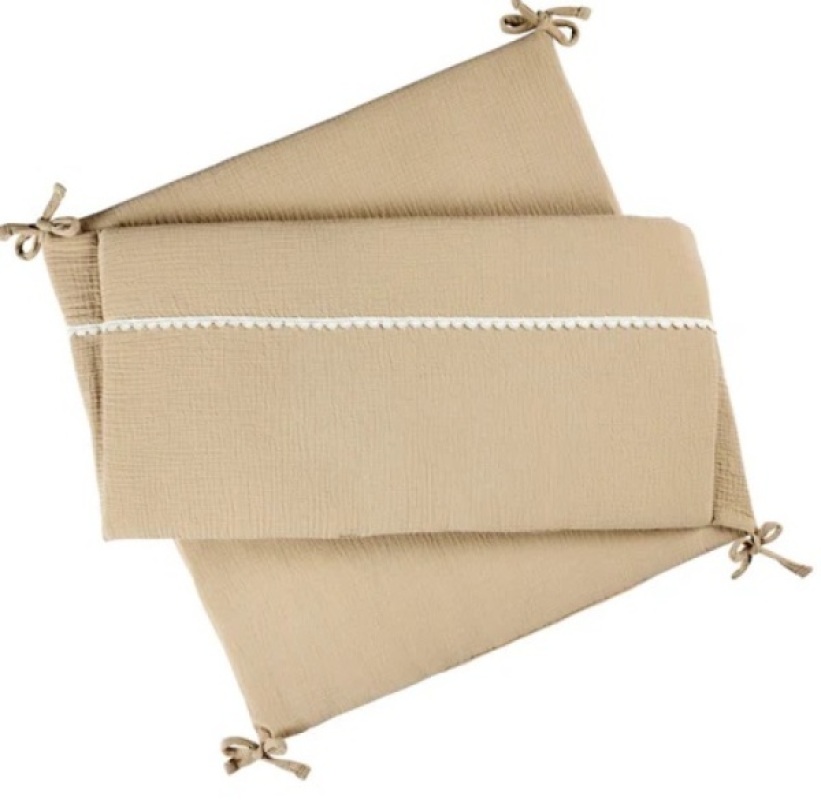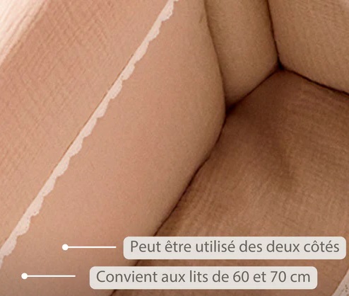 Confectionné dans une mousseline de coton douce et respirante, il protège bébé des barreaux du lit tout en créant une atmosphère rassurante et apaisante.