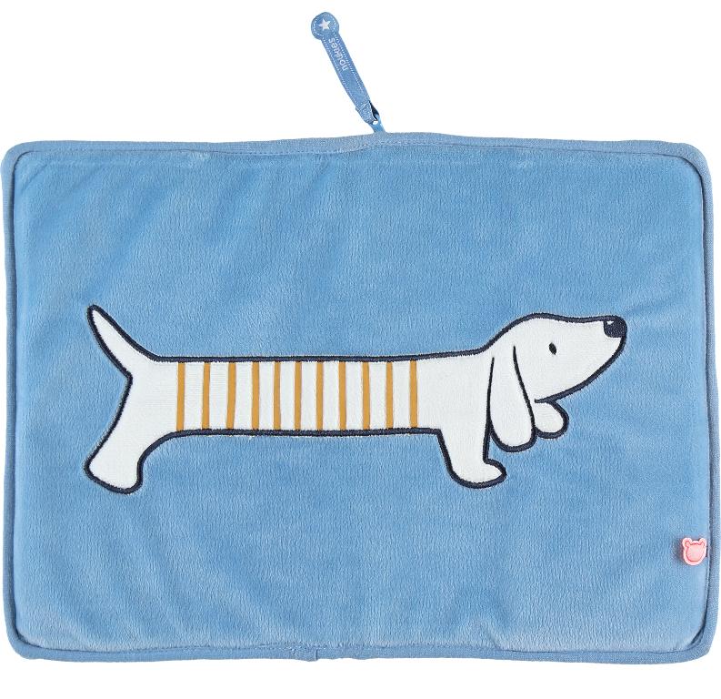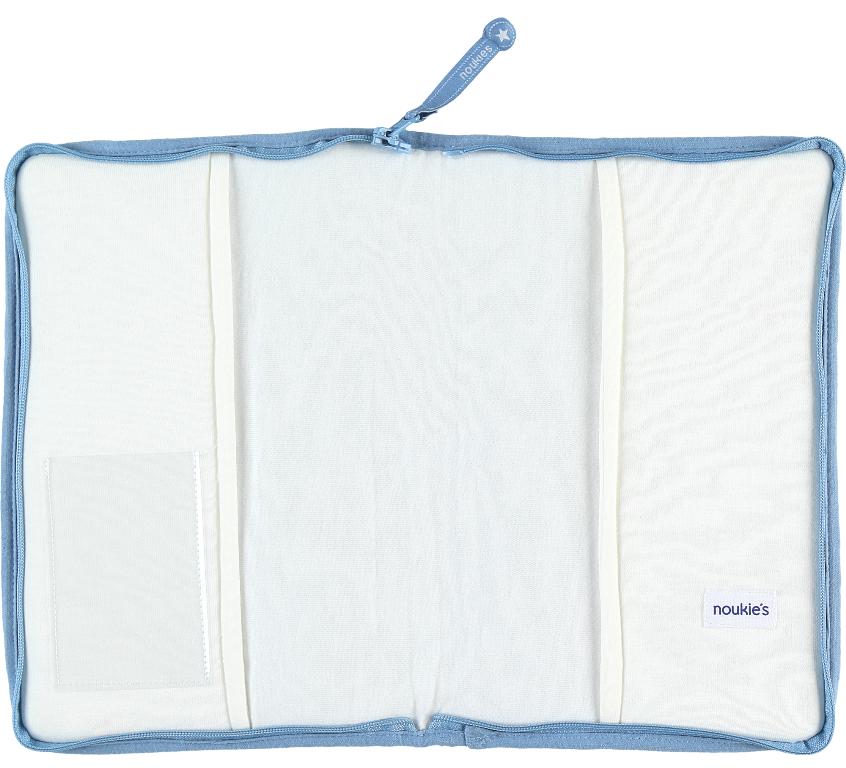 Le protège carnet de santé en Veloudoux bleu glacier de la collection Aston & Jack protège le carnet de bébé.