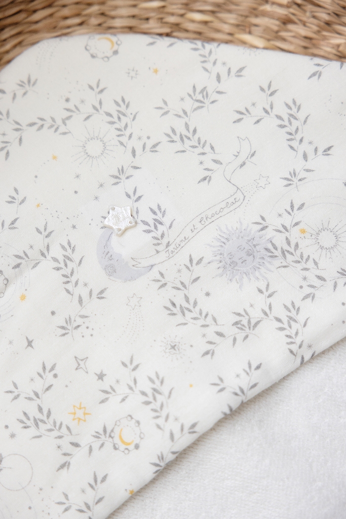 Rêve étoilé : lune, etoiles et astres enveloppent bébé pour de douces nuits.Enveloppez votre bébé dans un cocon de tendresse après le bain.