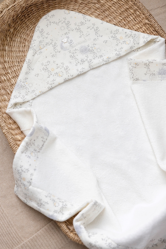 Dotée de la signature poétique de la collection, cette sortie de bain pour bébé allie un design élégant à une absorption exceptionnelle pour protéger la peau délicate des tout-petits.