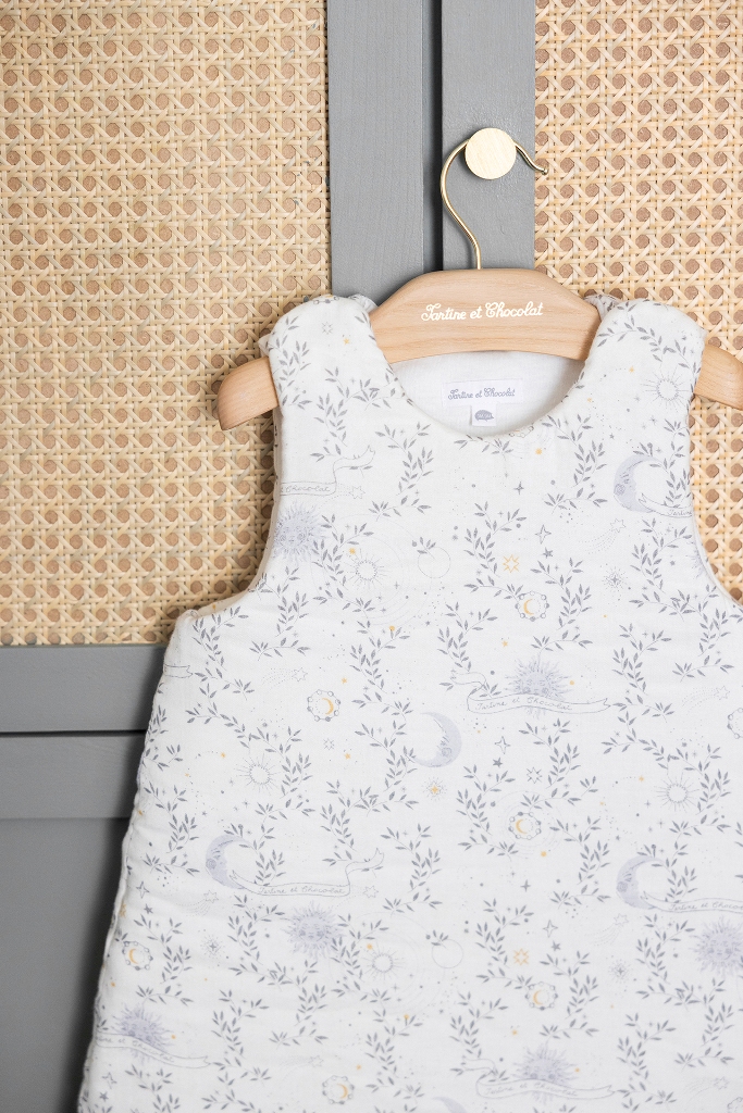 Craquez pour la gigoteuse Rêve Étoilés taille 1 Tartine et Chocolat et offrez à bébé des nuits paisibles enveloppées de douceur et d’élégance !